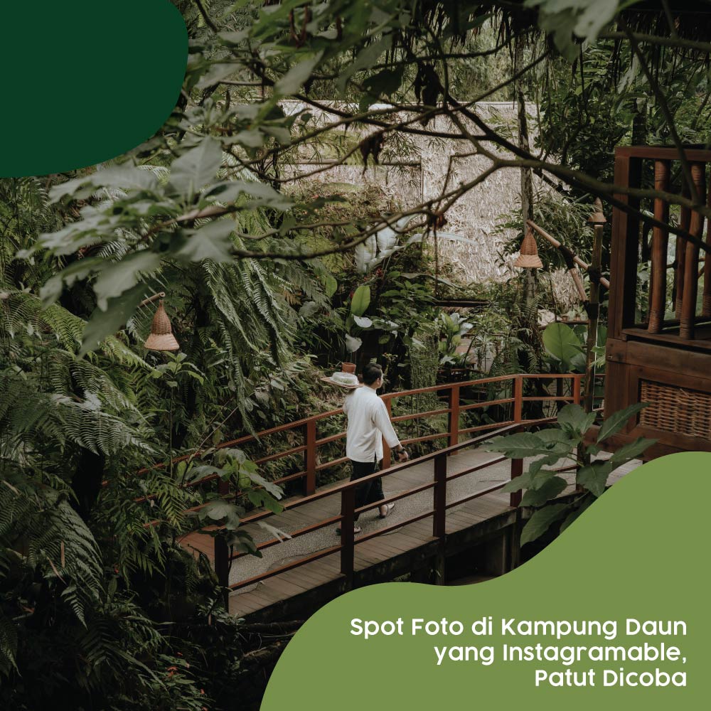 Kampung Daun yang memiliki luas sekira 2,5 hektar ini bisa juga dijelajahi oleh pengunjung sembari menunggu makanan datang. Oleh karena itu, yuk intip 5 spot foto yang Instagramable di Kampung Daun, yang patut Anda coba selama berkunjung ke sana.