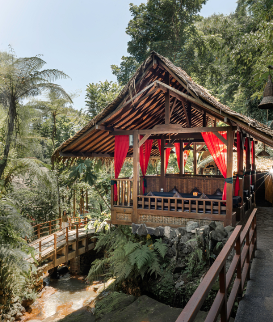 Nikmati wisata kuliner bersama keluarga dengan pesona alam yang mempesona ditengah suasana perkampungan bersama hamparan saung-saung dan bawa diri Anda bereksplorasi menyusuri jalan setapak dinding tebing batu alami serta alunan gemericik sungai yang mengalir sehingga membawa ketenangan jiwa dan bersatu dengan alam.